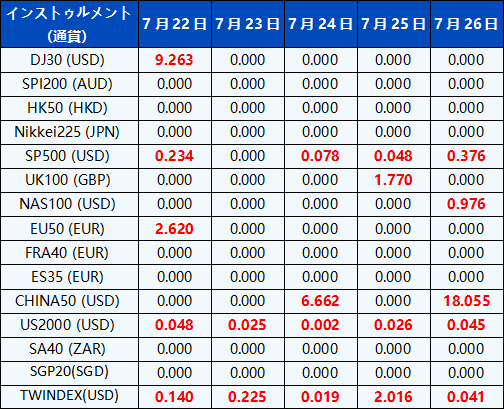 次のインデックスCFDの配当金は、今後の除配当日によって調整されることをご了承ください。インデックスCFDを取引するためのコメントは、次の形式 “Div&<Product Name>&<Net Volume >” で表示され、配当支払日の前日の終了後の残高に表示されます。